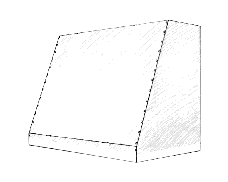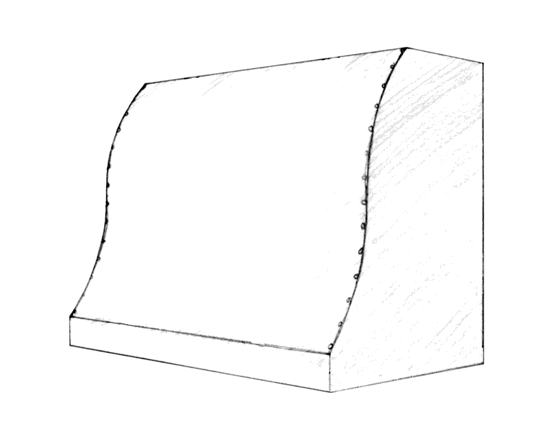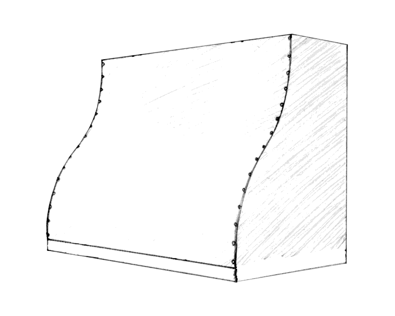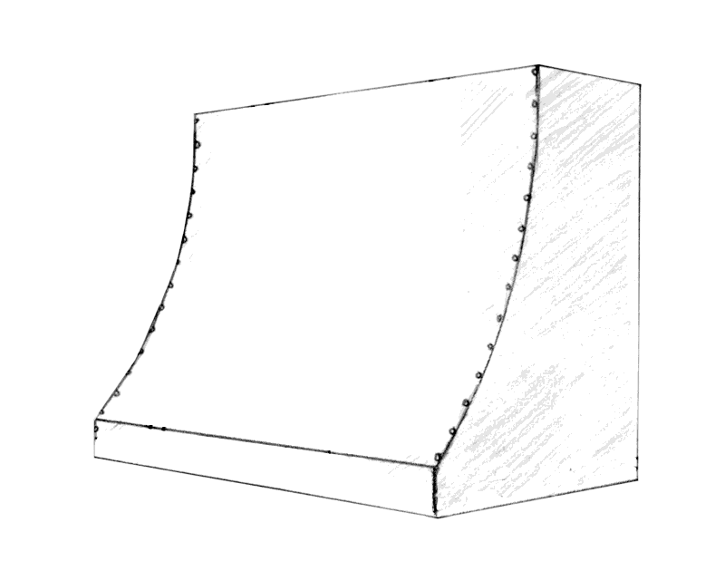 Decorative metal angle plates that are riveted to the lower outside corners of our Traditional series of range hoods.